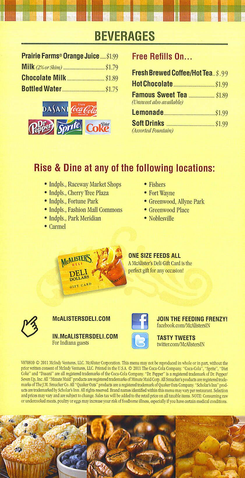 Mcalister S Deli Menu With Prices Full Online Menu Restaurant Menu Mcalister S